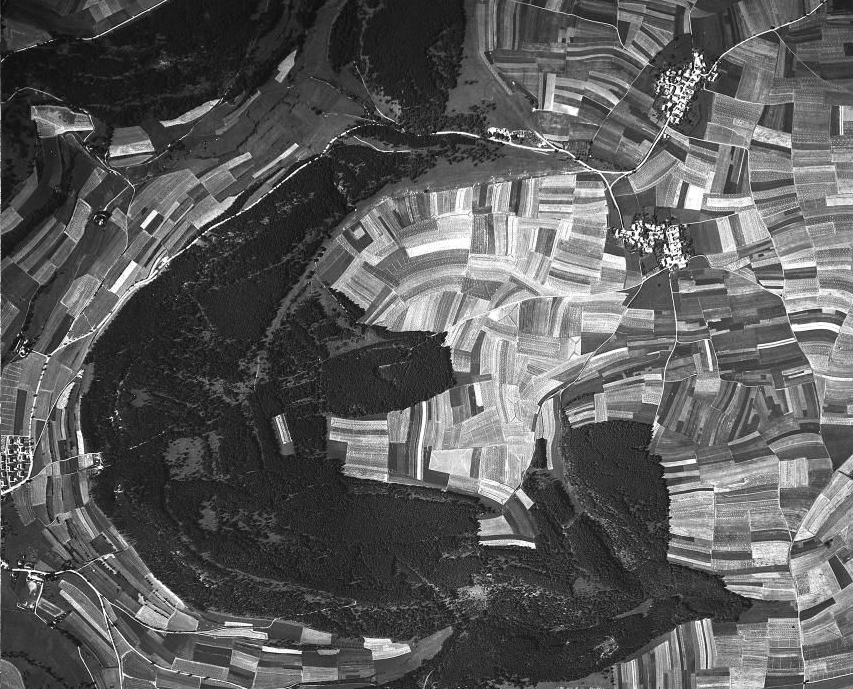 The above picture was taken in 1943 and is of the area around Wurzburg in Germany. The complexity of the field system is staggering. You can pretty much see where our civilisation just moved into certain spots and decided to build towns - most probably close to a canal (oops, sorry - river) or on top of auxilliary and satellite structures, which, if dismantled, could have provided an excellent source of perfectly cut and shaped stone for building our own structures!